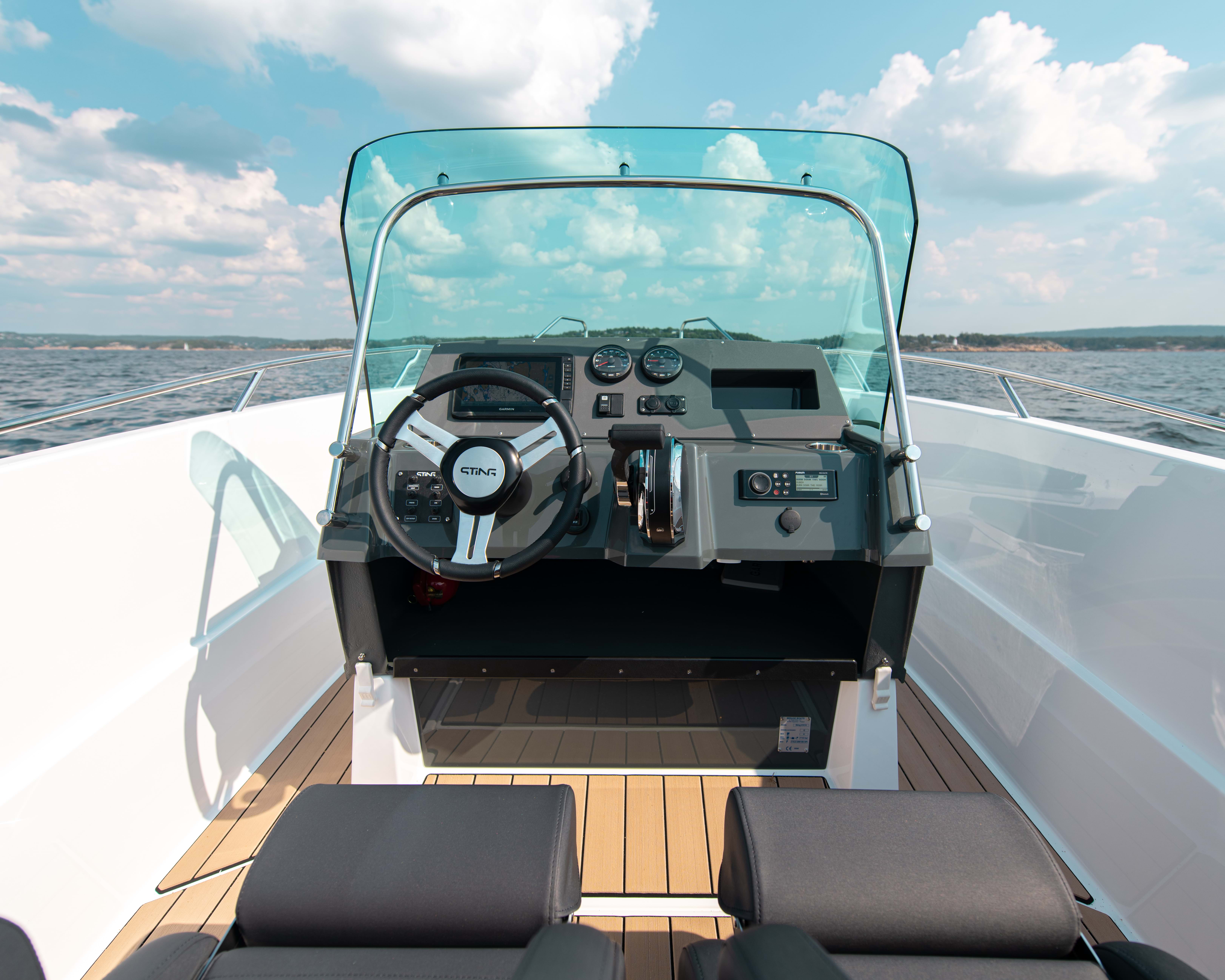 Se etter plassering av plotteren og hvor enkel denne er å navigere på. Et tips i skjærgårdsjeepen er å både sette deg i førerstolen og stå ved førerposisjon når du tester. Du vil raskt se forskjell på de forskjellige båtene du tester, da utforming og funksjon på vindskjermene varierer, både i høyde og bredde.
